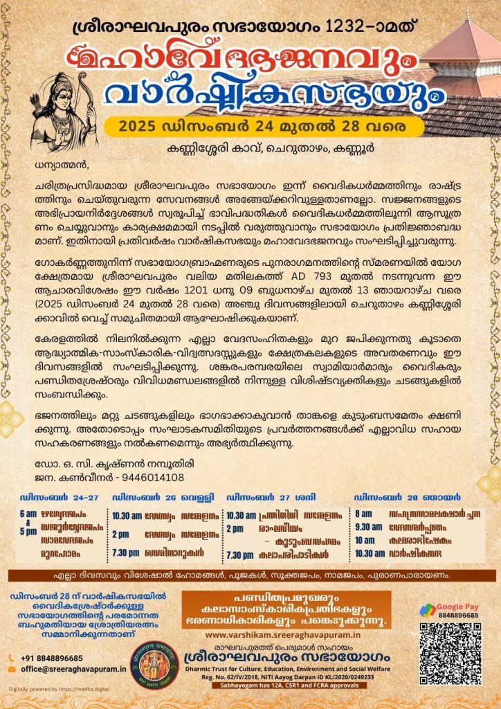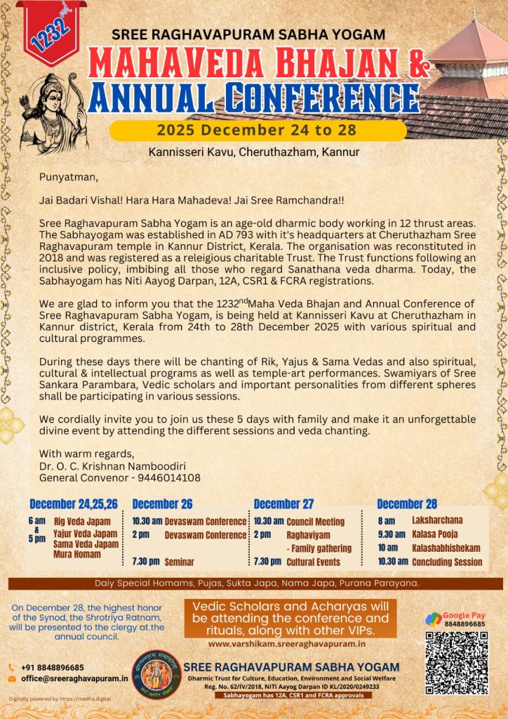 1232-ാമത് മഹാവേദഭജനവും വാർഷികസഭയും